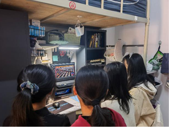 蓝鲸直播 师生在雁塔校区集中收看大会开幕盛况