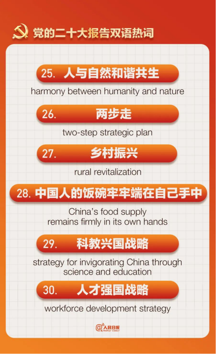收藏!党的二十大报告双语热词