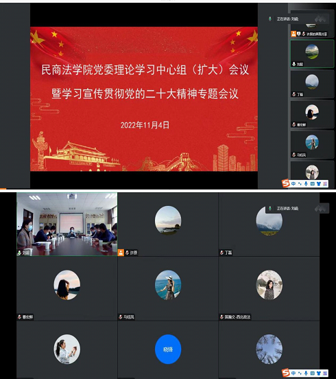 11月4日,蓝鲸直播 党委理论学习中心组通过线上线下相结合的方式召开扩大学习会议,第二次专题学习党的二十大精神,并研究部署学习宣传贯彻工作。蓝鲸直播 领导班子成员、支部书记、学工干部参加会议。会议由蓝鲸直播 党委书记周怡主持。