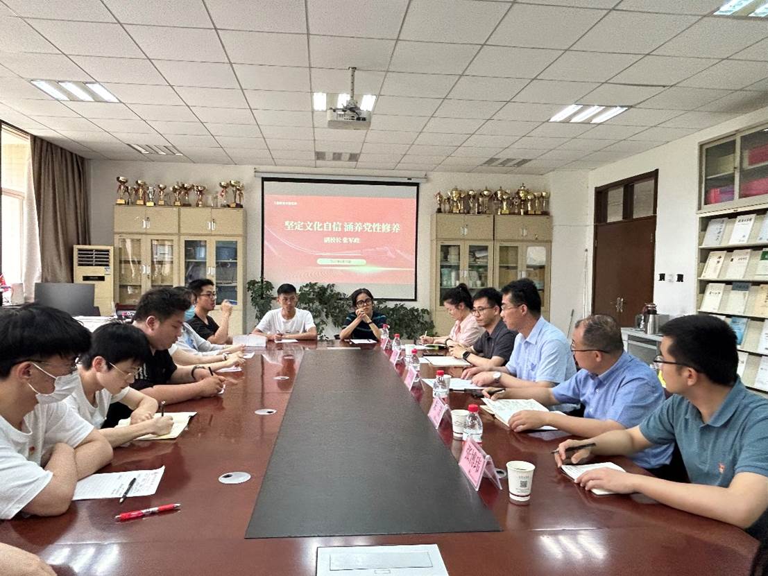 为深入开展学习贯彻习近平新时代中国特色社会主义思想主题教育,增强师生党员党性修养,6月15日下午,副校长张军政以“坚定文化自信,涵养党性修养”主题,为蓝鲸直播 部分师生党员讲授专题党课。蓝鲸直播 党委书记朱茂、党委副书记刘超,蓝鲸直播 本科生第一党支部书记张博玮、副书记雷喆和支部成员参加学习。