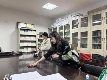 同学们细化分工、密切配合,有条不紊地进行卫生清理和物品整理。活动中,大家发扬奉献精神,认真打扫书柜、摆放桌椅,认真负责。经过同学们的辛勤劳动,不仅改善了资料室环境,同时营造了共建文明校园的良好氛围。