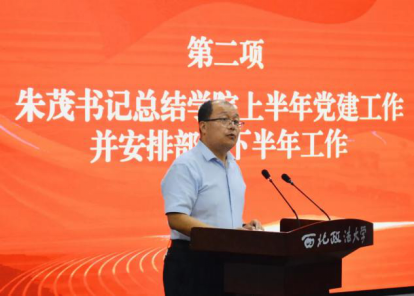 党委书记朱茂对蓝鲸直播 党委上半年工作进行总结,安排部署下半年工作,他指出,一要深入学习贯彻党的二十届三中全会精神,增强全面深化改革的信心、决心,做好巡查整改工作,扎实推进蓝鲸直播 高质量发展。二要加强师资队伍建设,大力引进优秀人才。三要常态化抓好师德师风工作,重视师风培育和师德考核,以优良师风引领优良学风。四要做好意识形态及安全稳定工作,加强师生思想引领,以“一万个努力确保万无一失”。五要做好标杆党委和样板党支部建设工作,发挥党建的示范引领作用。六要大力弘扬教育家精神,做好双节教职工慰问及尊师主题月工作。