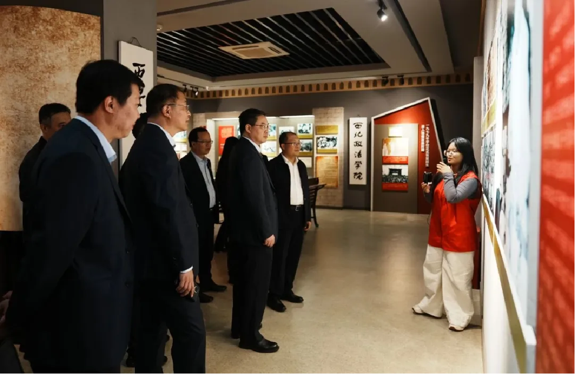 全体与会人员参观了我校校史馆,了解学校的办学历史,并对我校传承红色基因、特色学科建设、教育教学质量提升等表示充分肯定。现场学习学校“法治信仰,中国立场,国际视野,平民情怀”的育人理念,实地体会依法治企的重要性。