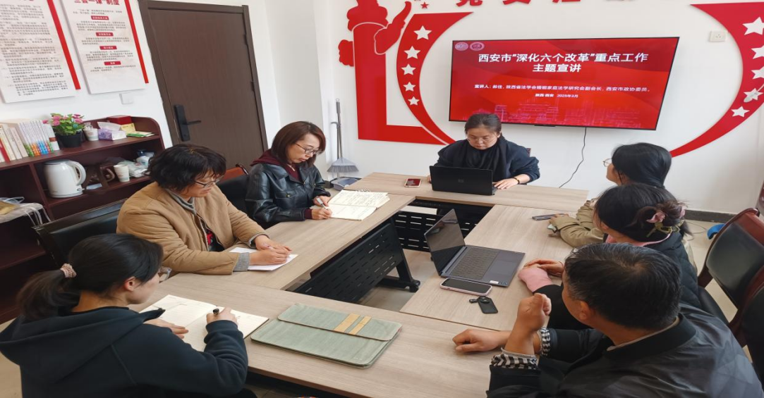 郝佳副教授此次宣讲,内容详实,脉络清晰。此次党建学习活动,让全体党员深刻领悟西安市“深化六个改革”重点工作内容,深入了解西安高质量发展和内涵。家事法支部将以此为契机,充分发挥自身优势,深化产教协同育人机制,推动法学专业与行业精准对接,通过校企资源互通赋能教育实践,打造具有法学特色的产教融合品牌。