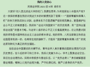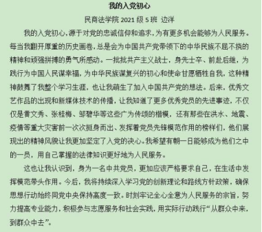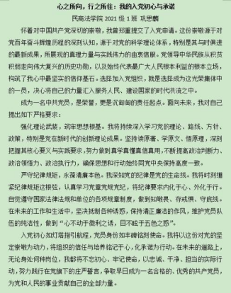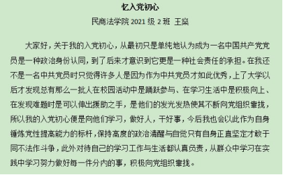 交流中,党员们围绕“为何入党”“何为党员担当”展开赤诚对有人回溯递交入党申请书时的激动时刻,将初心锚定在“为人民服务”的朴素信仰中;有人结合法学专业背景,坦言要让党员身份成为践行公平正义的精神标尺;更有人以未来职业规划为引,承诺在司法实践中始终保持入党时的纯粹热忱。这场跨越空间的思想碰撞,没有华丽辞藻,却在一句句真挚的自我剖白中,勾勒出民商学子“党徽与法徽同辉”的精神底色。