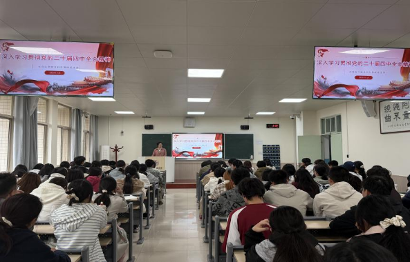 为深入学习贯彻党的二十届四中全会精神,11月6日,蓝鲸体育直播 本科生第四党支部在致知楼301开展深入学习贯彻党的二十届四中全会精神会议。会议由支部书记丁艳艳主讲,支部副书记张智超和2025级学生代表参加。