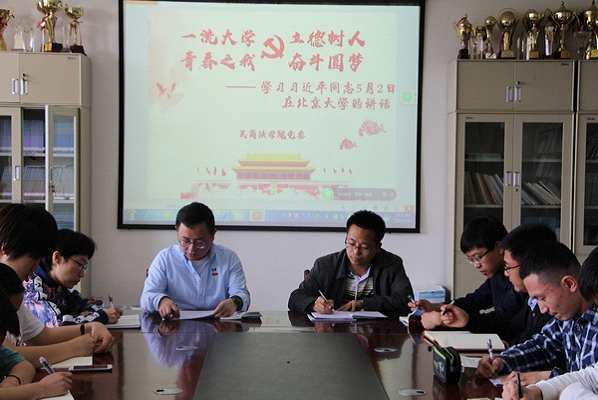 辅导员李伟弟领学了习近平总书记在北京大学的讲话内容,着重强调了习近平总书记对于高校三项基础性工作和广大青年的四点希望等论述。会上,各位学生党员代表踊跃发言,并结合自己的生活学习实践对习近平总书记讲话精神加以解读。学生党员们一致表示:实现中华民族伟大复兴的中国梦,广大青年生逢其时,也重任在肩。今后将紧密围绕实际,努力在今后的学习生活工作中释放青春激情、追逐青春理想,以青春之我、奋斗之我,为民族复兴铺路架桥,为祖国建设添砖加瓦。