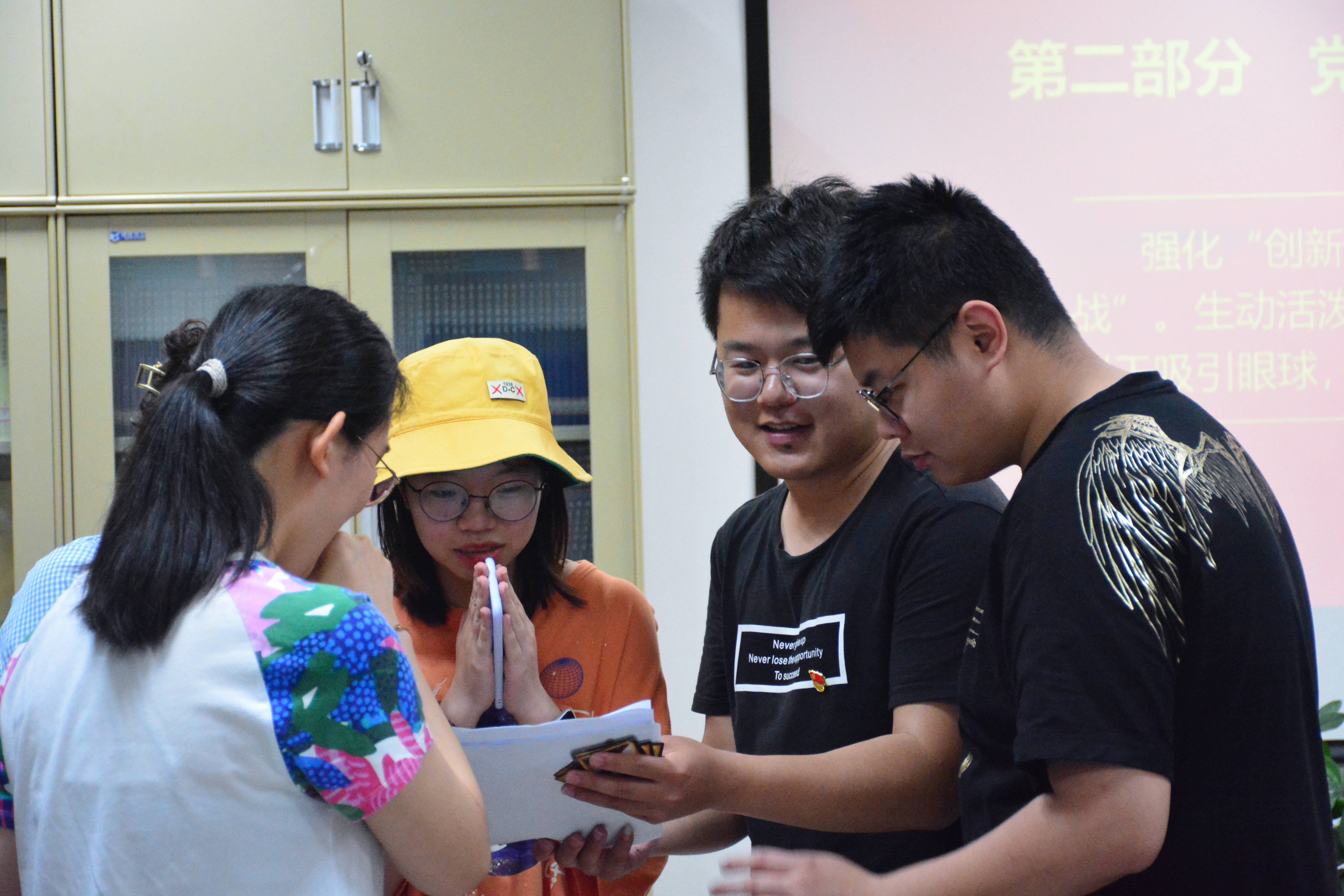 随后劳逸波、韩玉和、袁伟喆、陈栋四位同志分别带领四个小组开展党史知识竞答和红歌竞猜活动在活动中,40道典型党史知识试题和不同时代的经典红色旋律引发了全体党员的参与热情和学习兴趣。