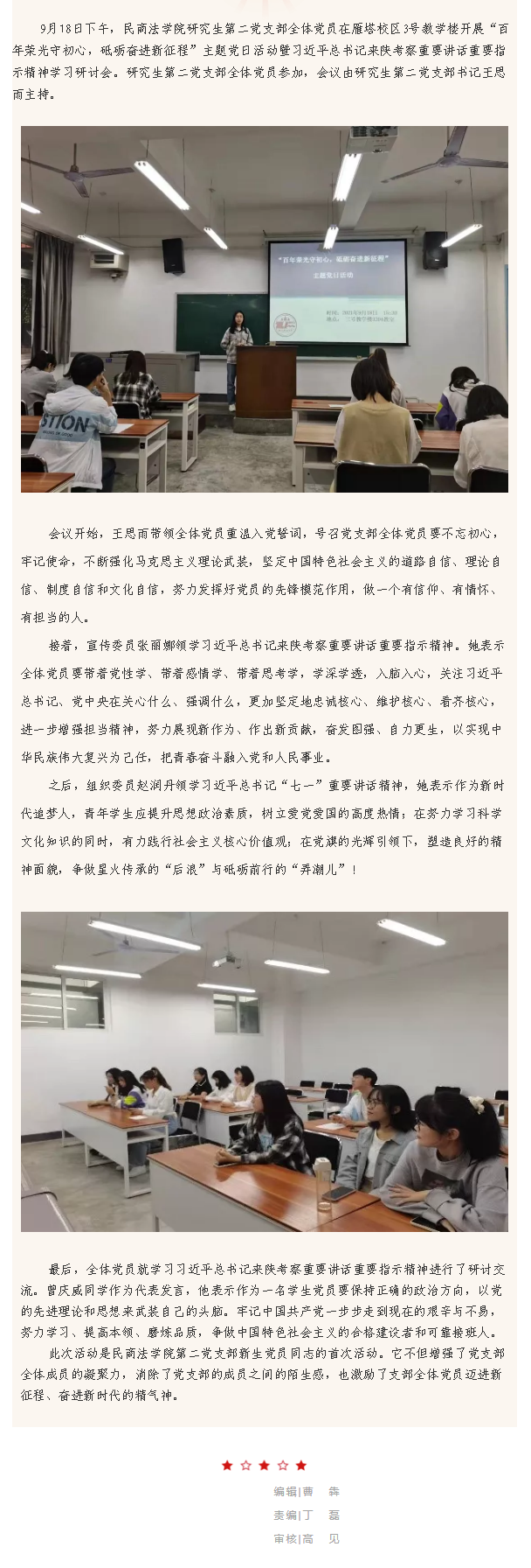 研究生第二党支部开展 “百年荣光守初心 砥砺奋进新征程”主题党日活动