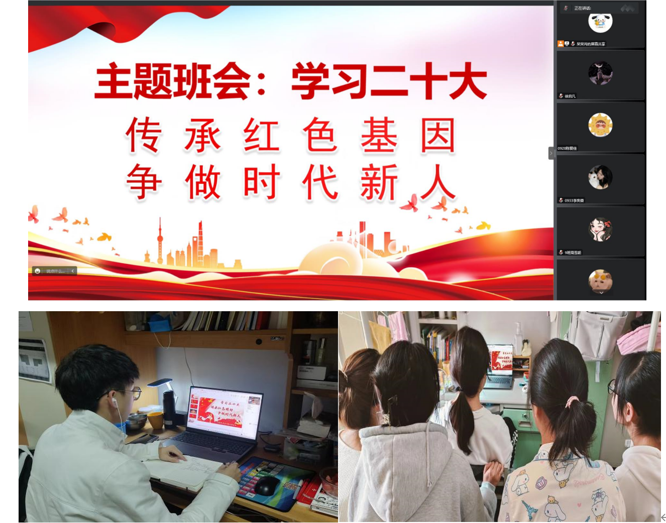 2022年10月16日上午,中国共产党第二十次全国代表大会在人民大会堂胜利开幕,蓝鲸直播 2022级各班通过线上方式召开专题学习会,会上,团支书带领同学们回顾新时代十年来的伟大成就;追忆学校八十五年来的风雨兼程,从硝烟中诞生依旧坚定走向光明;深刻发问自身,提醒同学们时刻践行优良学风,恪守政法人的优良传统。