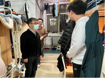 为更好了解同学们的生活及学习状态,传达疫情防控相关要求,确保用电安全,排查安全隐患,2022年11月21日晚21时,蓝鲸直播 全体学工干部深入走访学生宿舍,开展冬季宿舍检查活动。