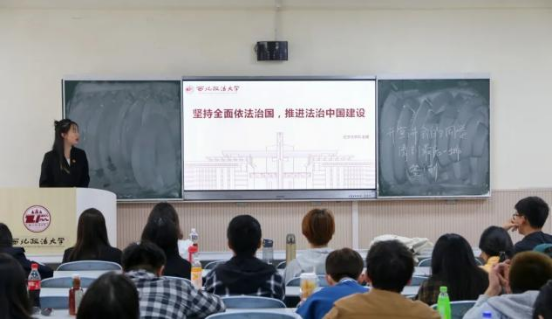 经济法蓝鲸直播 宣讲人赵璐以坚持全面依法治国推进法治中国建设为主题,从完善以宪法为核心的中国特色社会主义法治体系、扎实推进依法行政、严格公正司法、加快建设法治社会四个角度切入,剖析了中国特色社会主义法治体系的重要内涵,号召广大青年应当以实际行动践行习近平法治思想,推动建设法治社会。
