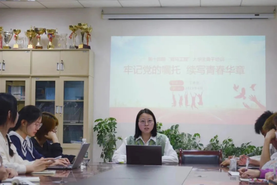 丁艳艳以《牢记党的嘱托 续写青春华章》为主题,对同学们进行了第一期培训。丁艳艳从把牢立身之本,始终坚持党的领导;铸就政治之魂,始终坚守理想信念;凝聚奋进之力,始终投身民族复兴;涵养活力之源,始终扎根广大青年四个方面带来了精神讲述,让同学们深刻体会到广大青年必须牢记党的教诲,立志民族复兴,奋力前行。