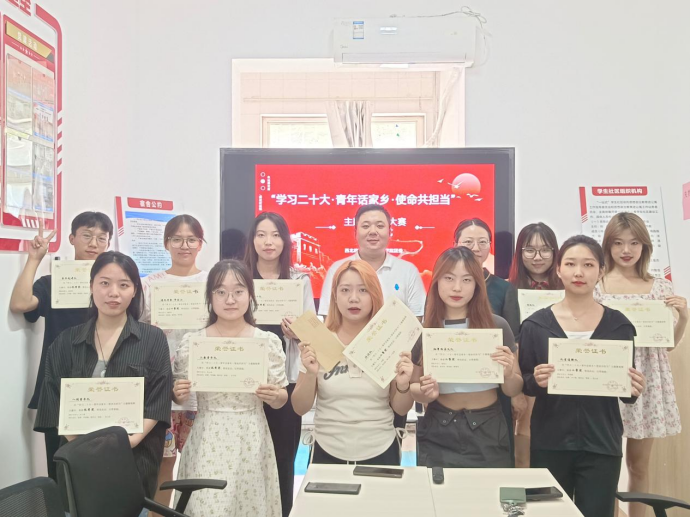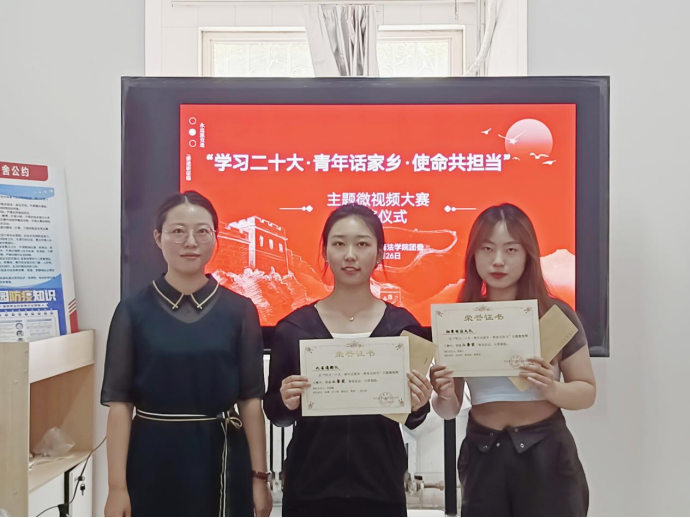 为深入学习宣传贯彻党的二十大精神,引导广大青年学生深刻认识到新时代十年的伟大变革,6月26日,蓝鲸直播 在十号公寓楼“一站式”学生社区思政工作站举办“学习二十大·青年话家乡·使命共担当”颁奖仪式。蓝鲸直播 团委书记丁艳艳、2021级辅导员张智超出席仪式。