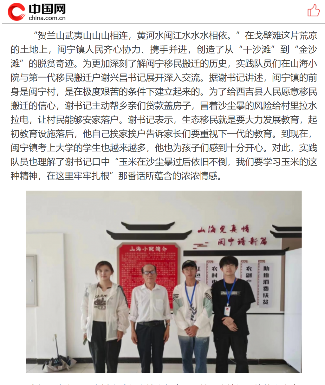 中国网报道蓝鲸体育直播 “共赴山海,情系闽宁”暑期社会实践调研活动
