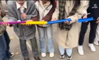6班与7班准备了“隔山打牛”“珠行万里”“踩气球”等破冰游戏。伴随着欢快的歌声,气氛逐渐热烈,同学们也逐渐融入游戏。即使天气寒冷,同学们仍热情不减,在一片欢笑声中结束游戏。
