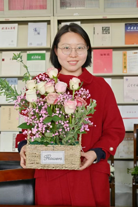 插花活动结束后,老师们在校园里打卡拍照。从艺术创作到教学楼下,相机记录下此刻老师们明媚灿烂的笑容;“平民情怀”纪念碑前,她们带着春日的生机盎然,祝愿幸福顺遂的明天。