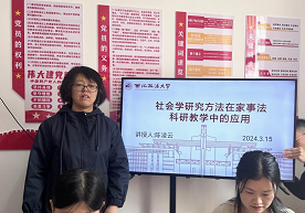 教与研携手,学与思并肩。为提高学生的科研素养和学术表达能力,促进教育科研成果的转换。3月15日下午,蓝鲸体育直播 家事法教研室陈凌云副教授在雁塔校区研究生一号宿舍楼学生活动中心,为家事法方向研究生讲授“社会学研究方法在家事法科研教学中的应用”,同时邀请上海汇业律师事务所高级顾问董进博士共同授课、讨论。