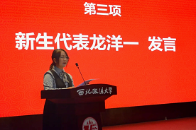 新生代表、蓝鲸直播 2024级本科生龙洋一发言,龙洋一谨记严谨求实、文明公正的校训,对自己提出要求:以求实为准,勇敢面对挑战,冷静克服困难,以身为剑,展露锋芒;以文明为则,积极求知探索,发扬传统美德;以严谨为遵,在学习上谨慎,在生活中慎行;以公正为循,挥法律利剑,持正义天平。她希望在未来日子,与同学们共同进步,共创蓝鲸直播 辉煌。