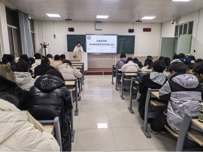 雷老师对同学们入学以来的学习生活等各方面进行了回顾和总结,围绕《西北政法大学考场规则》《西北政法大学学生违纪处分规定》《西北政法大学学士学位授予实施细则》,对全体同学进行了考风考纪教育。她强调,一是要认真复习、积极备考,制定科学的复习计划,根据自身学习情况合理分配复习时间;二是要调整心态、愉快迎考,积极调试心理状态,做到劳逸结合;三是要坚守底线、诚信应考,端正考试态度,严格遵守考场纪律,坚决抵制作弊行为。