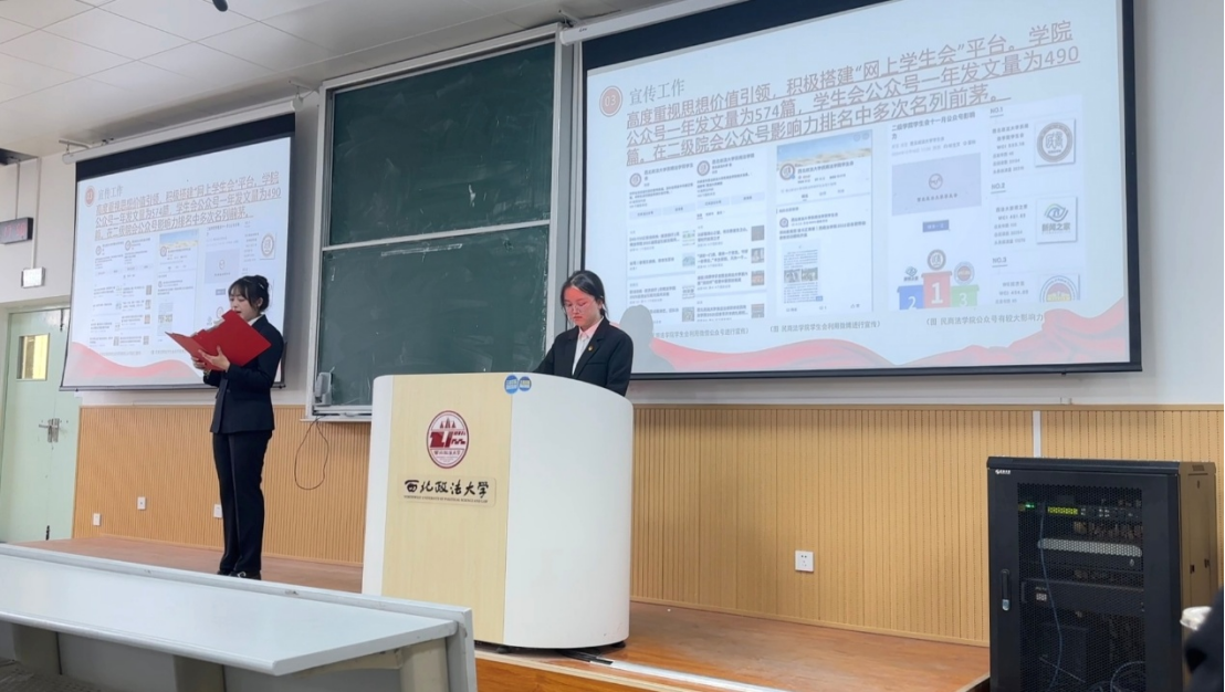 为表彰先进,树立典范,西北政法大学2024-2025学年二级蓝鲸直播 学生会评比表彰大会于5月14日上午在长安校区天平楼AJ21教室隆重举行。会上,李璐怡代表蓝鲸直播 学生会作述职汇报,全面展示了过去一年的工作成果。