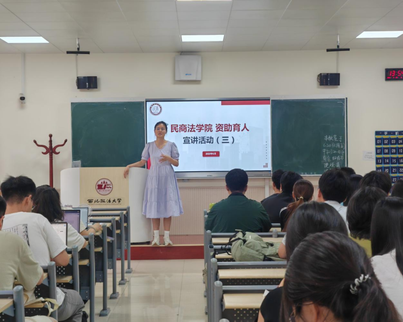 社会奖助学金是指企事业单位、社会团体、友好人士在我校捐资设立的,用于奖励优秀学生或资助家庭经济困难学生的专项资金。张紫馨向同学们介绍了我校社会奖助学金的种类、评选条件等信息,会上重点讲解了“两高律所”奖学金、海伦奖学金的评选细则与要求,鼓励符合条件的同学积极申报,将来用自己对的实际行动回馈母校、回馈社会。