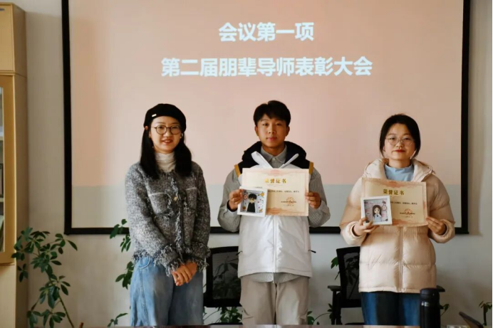 会上,杨亚男老师围绕“分享·帮扶·引领”三线并进的工作思路,回顾了“知行”工作坊过去一年的发展足迹,为第二届朋辈导师的辛勤耕耘与丰硕收获作总结。随后,她宣读表彰决定,为吕佳豪、郑雨荷两名同学颁发奖状及专属纪念品,并对第二届朋辈导师在学业指导、心理支持、经验分享等方面取得的显著成效给予充分肯定。