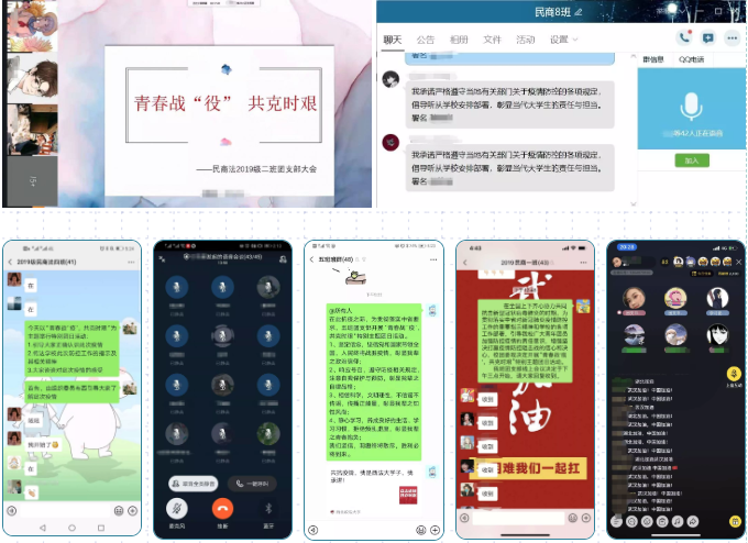 蓝鲸直播 团委、各团总支、各团支部根据中省学校相关安排部署,紧密围绕“青春战‘疫’,共克时艰”这一主题开展相关教育活动。团支部会议内容围绕防疫工作安排、校纪校规、防疫知识、心理疏导等方面,采取QQ、微信、网络平台直播等新媒体形式举行,强化思想引领,充分提高认识,确保关键时期全体团员严守团的纪律和章程,做到思想不动摇、精神不滑坡、行动不偏离。