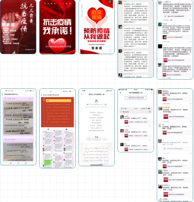 守诺、信诺、行诺,做言行合一的新时代团员。全体团干部、团员通过组织“防控疫情,我是西法大学子我承诺”活动,实现对于团中央号召的庄严承诺和使命担当。通过微信公众号推送、网络签名、QQ在线接龙等形式,响应教育部、学校和蓝鲸直播 的相关倡议,做守法明纪的爱国者、践行者和维护者。