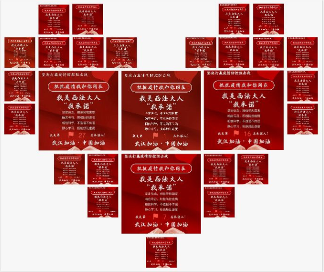 英雄不是不会怯懦,而是不会被怯懦所压倒。正是黑暗见证了光明,软弱体现了有力,愚昧映出了科学,失序呼唤了正义。作为一名西法大人,我们更要坚守理念,信守法纪,用使命责任去维护国家正义,用爱国奉献去实现个人价值。希望大家凝心聚力,共同奋进,一同坚守好防控疫情阵线。