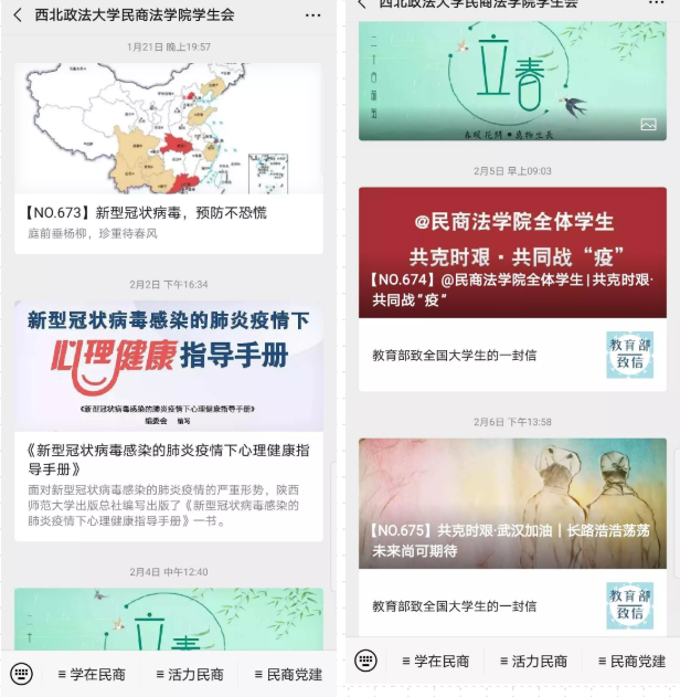 自新型冠状病毒感染肺炎的疫情暴发以来,蓝鲸直播 党委要求蓝鲸直播 团委、各团总支、团支部将疫情防控工作作为首要任务来抓。蓝鲸直播 公众号平台及时制作推送了防范疫情的健康卫生知识、心理健康知识、健身锻炼方法以及围绕思想教育、爱国主义等内容开展的相关内容。同时蓝鲸直播 各团支部围绕相关主题积极进行相关主题教育,先后制作短视频、开展祝福接龙、宣传各类防疫知识等内容。将线上教育与线下行动充分了起来。