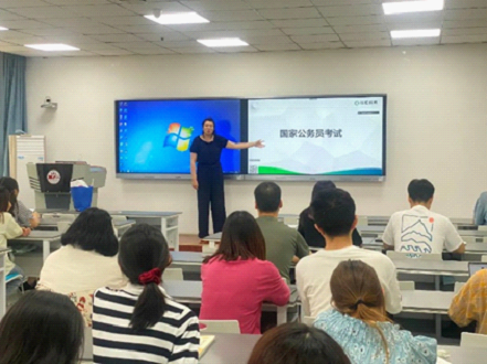 刘洋老师对公职类工作的优势与前景做出简要介绍,带领与会同学审视自己未来进行公职类工作规划的可行性,指出蓝鲸直播 及学校将会为同学们提供资源支持,为意向考公职类岗位的同学指明方向,提供帮助,并对有志于从事公职类工作的同学提出期待,送上祝福。