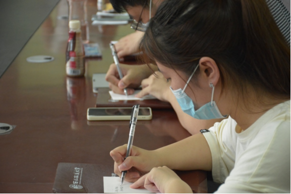 活动中,2022届毕业生将自己的专业书、课外书以及考研资料等捐赠给学弟学妹们,收到捐赠书籍的在场同学为表达感激,在明信片上写下了对学长学姐的祝福,亲手送给在场的学长学姐们。希冀与憧憬在书中传递,感激与祝福在卡片中流露。