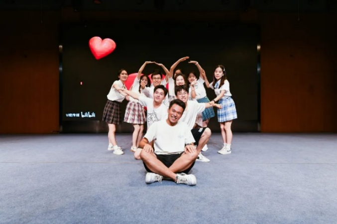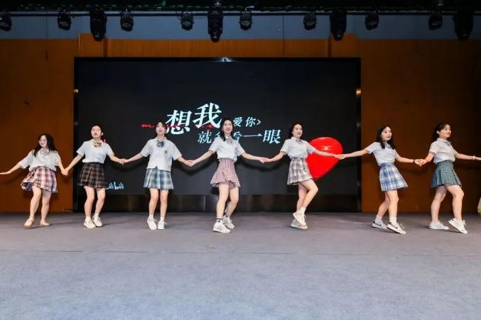 仪式第七项,毕业生辅导员杨亚男带领学生代表为在场师生表演快闪舞蹈《爱你》,并演唱歌曲《你的答案》。之后,播放了由蓝鲸直播 为毕业生精心准备的纪念视频《追梦》。一张张照片闪过,青春洋溢的笑脸记载着四年的美好回忆。脚步轻快,歌声悠扬,追梦途中的日夜,是热爱最好的答案。