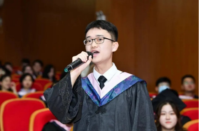 仪式第五项,国瀚文老师代表蓝鲸体育直播 教师寄语毕业同学。国老师既表达了临别之际蓝鲸体育直播 各位领导老师对于毕业同学的不舍与关心,也以“匠心守护本心,本心守护初心”为内容对在场同学进行了叮嘱与激励。国老师强调,民商法学是普世济民、经世济邦的学问,作为蓝鲸直播 学子,应当牢记四年所学的法学基础理论与知识框架,学以致用,积极承担责任,为国家与社会的法治撑起一片蓝天。