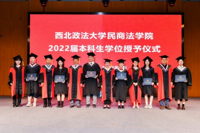 两位老师向获奖同学表示祝贺,并激励毕业生以饱满热情开始毕业后的新征程。随后,院长程淑娟、党委书记周怡、党委副书记刘超、团委书记丁艳艳、硕士生导师赵林青教授、民诉法教研室主任、硕士生导师韩红俊教授为优秀毕业生、西部计划优秀志愿者与校级优秀毕业论文作者颁奖。凤建军副院长援引习近平总书记寄语“人生万事须自为,跬步江山即寥廓”勉励2022届毕业生牢记党的教诲,不负韶华,立志为民族复兴事业做出贡献。