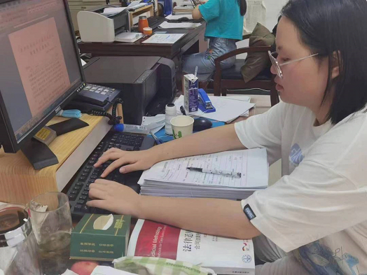 “纸上得来终觉浅,绝知此事要躬行。”转眼间,我已经实习三周了,第一次真正的走出知识的象牙塔,在社会上实践,在一个切实的工作岗位上将我的所学运用于实际。这几周我主要的工作是帮助书记员整理卷宗、编页码、编目录,这些基础且繁琐的工作让我真切的感受到了每一位书记员的辛苦,他们日复一日,仍保持着对工作的热爱,为人民服务。在这实习的过程中,我了解了执行程序的流程和学习书写相关法律文书,也阅读和学习了判决书的内容,受益匪浅。同时,我也认识到自己的不足,在未来我会更加努力学习,为中国特色社会主义法治强国建设添砖加瓦!——2020级9班汪佳绒