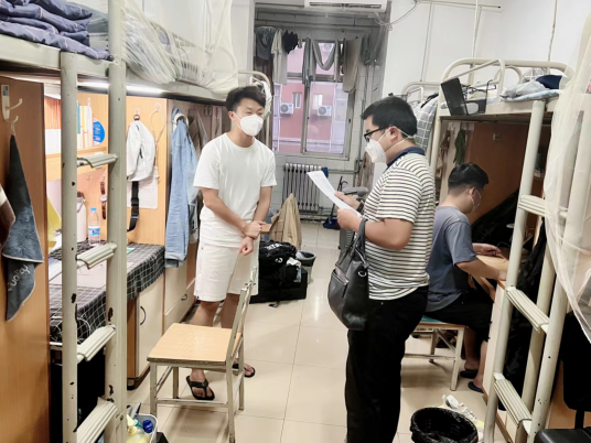 时值开学,老师对同学们的返校表示了热烈欢迎,并与同学们深入交流,了解同学们的困难,解答同学们的问题。同时,老师们提醒同学们调整心态,尽快适应校园生活,将时间和精力投入到自我提升中去。此外,老师们强调了宿舍用电安全、生活安全等基本问题,督促同学们自觉遵守学校各项安全管理制度,遵守疫情管理规定,要求同学们树立筑牢防患于未然的思想,增宿舍安全意识和卫生防护意识,共同营造优美和谐的宿舍环境。