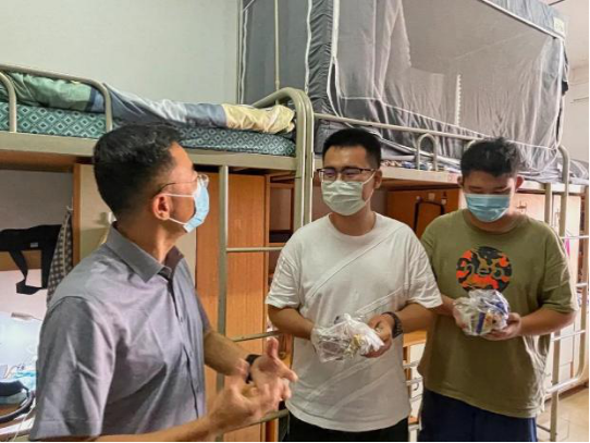 每逢佳节倍思亲,9月10日是2022级新生入校后的第一个中秋节。为使新生感受到蓝鲸直播 的浓浓温情,增进师生之间的交流,9月9日上午,蓝鲸直播 党委书记周怡老师、民商副院长凤建军老师、党委副书记刘超老师和2022级辅导员杨亚男老师一同前往学生公寓亲切看望慰问新生,为新生送上一份温暖与祝福。