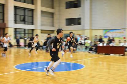 下半场比赛,赛事更加胶着。18号球员马高旭和24号球员唐盛杰默契配合,多次顺利上篮鼓舞了我方士气,15号球员赵锦烨漂亮的传球和9号球员那尔斯精准的投篮赢得了在场观众的阵阵喝彩。之后我方球员调整策略,平衡了进攻和防守,18号球员马高旭抢下篮板为我方争取球权,将领先优势扩大。21时29分随着哨声响起,我方以65:53取得胜利。