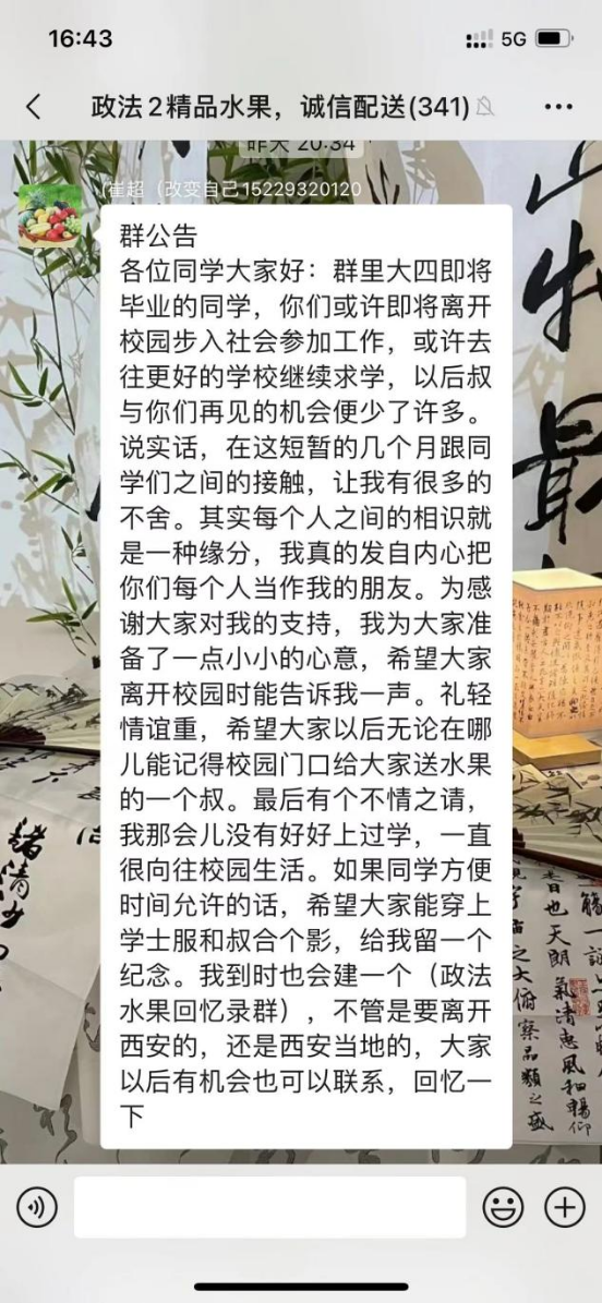 欣乐:送水果的叔写的话 让人看了好感动[流泪