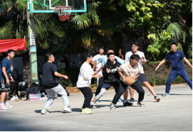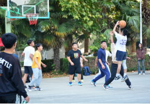 温暖的阳光更加点燃斗志,各队球员积极进行赛前热身,互相加油打气。随着一声哨响,比赛正式开始,球员们迅速进入状态。大一新生动作迅猛、身姿矫健,弹跳扣篮尽显球技;大二组严守硬对、配合完美,控球传导得心应手,频频打出精彩联动。拦截、防守、进攻、投篮,篮球在半空划出道道弧线,青春在跳跃里绽放光彩。