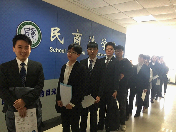 吉利汽车集团的法务部的顾部长和人事部的两位负责人出席了本次招聘会并担任面试官。蓝鲸直播 2018届毕业班辅导员刘妍良老师和刘超老师组织了报名的同学,参与现场招聘。为充分动员蓝鲸体育直播 毕业生积极报名,蓝鲸直播 两周前就在QQ、微信等网络平台发布了相关招聘信息,两位老师亲力亲为,结合毕业生的具体情况,进行有重点的推荐和动员,并为有意向参与的同学修改个人简历,提供相关的就业指导和咨询。