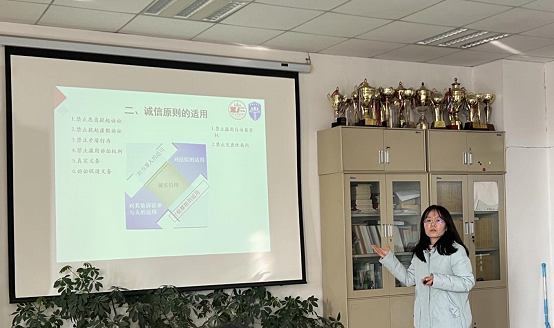 蓝鲸直播 党委书记周怡、院长程淑娟、党委副书记副院长刘超、教蓝鲸直播 长凤建军、省第三届高校课堂教学创新大赛二等奖获得者陈凌云、“西北政法大学课程思政教学骨干”刘文佳、教务秘书高桦担任了本次比赛的评审。活动由蓝鲸直播 教蓝鲸直播 长凤建军主持,四个教研室分别推荐了国瀚文、蒋丽华、贾同乐和高丰美四位老师参加本次比赛。