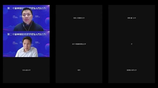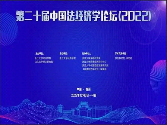 由浙江大学经济蓝鲸直播 、山东大学经济研究院联合主办、《经济研究》杂志社作为学术支持单位的第二十届(2022年度)中国法经济学论坛于2022年12月3日-4日在浙江大学顺利举行。考虑到疫情影响,本届论坛采取线上线下相结合的形式,分为五个小组平行进行了论文汇报、评议和讨论,分别为:金融与贸易;制度、创新与公共治理;环境治理与共同富裕;司法与犯罪;劳动、数据与创新。