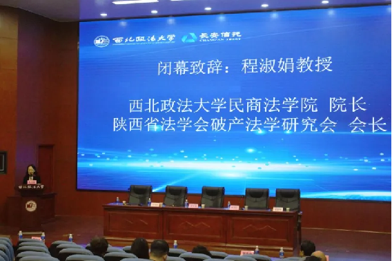 最后,由陕西省法学会破产法学研究会会长程淑娟教授作总结致辞,程淑娟教授认为,此次会议意义非凡,全方位地展现出破产法研究的深度与广度,以及各界对其的高度重视与不懈努力,同时指出会议在理论研究方面成效显著,极大地提升了破产法研究会的档次,既涵盖了执转破、破产与信托等关键内容,又充分体现出多学科融合的特色。最后,程淑娟教授对嘉宾的支持表示感谢并衷心祝愿陕西省破产法研究及实务工作能够取得更辉煌的成绩。