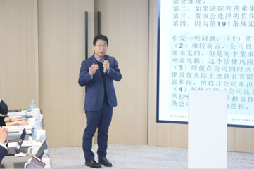 主旨发言与研讨环节由蓝鲸体育直播 副院长凤建军副教授主持。西北政法大学学科规划处处长王莹莹教授以“《民法典》在《公司法》的体系化适用——对新《公司法》司法解释征求意见稿的反思”为主题发言。