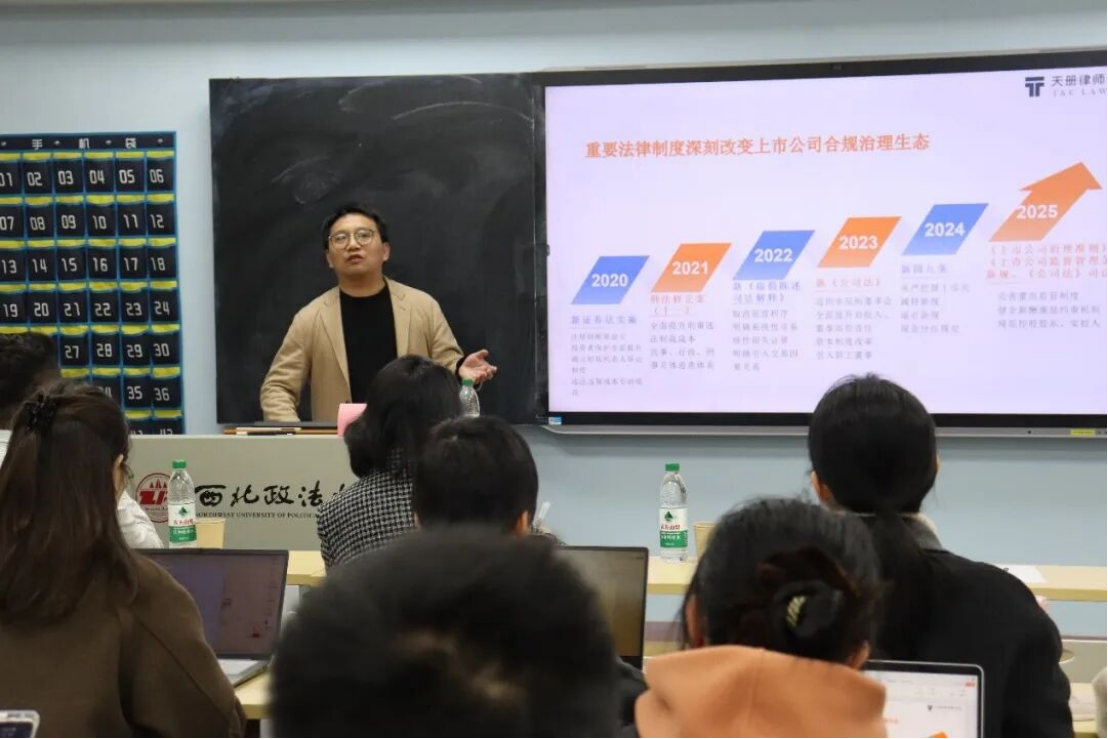 3月18日晚,蓝鲸直播 邀请法学博士、天册(深圳)律师事务所合伙人、蓝鲸直播 特聘教授曾斌来校开展讲座。讲座由蓝鲸直播 教授、院长、博士生导师程淑娟主持。商法教研室主任刘卫锋副教授和贾同乐博士担任与谈人。