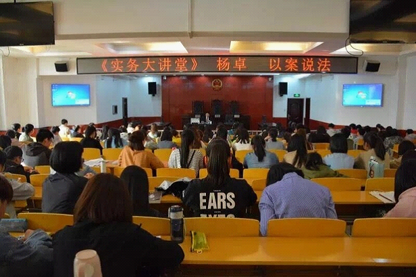案例探讨先从民事主体说起,他的第一个案例是“王德钦诉杨德胜、泸州市汽车二队交通事故损害赔偿纠纷案”,随后更是向在场学生提出了一个思考题:非婚生子女要求侵权人支付抚养费的请求能不能得到法院的支持?通过对案例的分析,结合民法总则中的法律规定杨卓法官详细地为在场学生进行了解析。之后,采用同样的方法,杨卓法官运用一个个案例将民法总则的规定串入其中,经过一个多小时的讲解,同学们对民法总则有了更深入的理解。