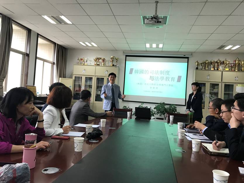 李东原就韩国的“司法制度与法学教育”进行讲述。首先他以韩国司法的意义,即三权分立原则为出发点对韩国的立法机构——国会、行政机构——政府、司法府——法院、宪法裁判所以及检察机关的等级、职权、程序等进行了说明。然后对韩国的法学教育体系(Lawschool教育)从发展历史到现况,从教育设施到培养制度,从辩护士考试制度到学生毕业就业等问题进行了图文阐述。李教授还就韩国2008年Lawschool改革前的法学教育培训模式进行了比较说明,并发表了自己的意见,结合日本Lawschool改革失败的经验阐述韩国成功的原因。